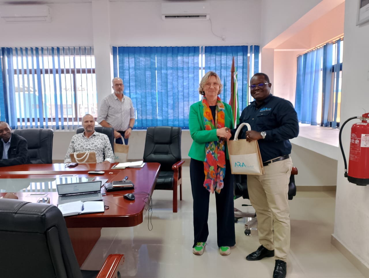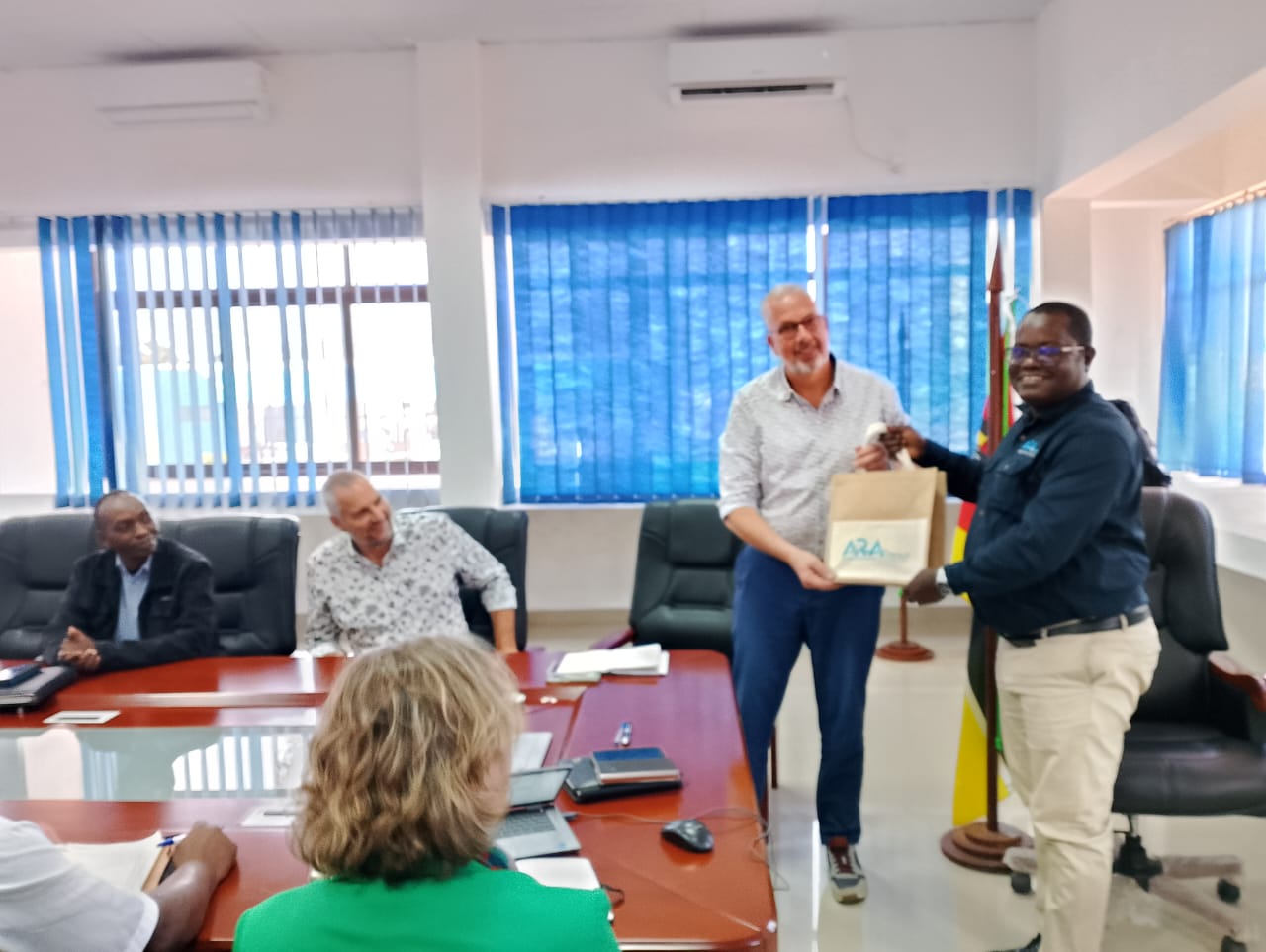 O encontro de cortesia entre o Dirigente Holandês do Programa BLUE DEAL e o DG da ARA Norte, IP marcou pela primeira vez a sua chegada na ARA Norte, IP que prioriza as suas portas abertas para mais visitas de trabalho. Martin Bos, chegou e mostrou-se muito feliz ao ver mais uma das suas etapas de visita a ser materializada. Sobre a visita de trabalho, tudo iniciou na cidade de Nampula quando a agenda foi espelhada no terreno depois da chegada e recepção dos visitantes, Parceiros de Cooperação. Foi uma recepção calorosa, transmitida pelo DG da ARA Norte, IP, Carlitos Omar que esteve junto do seu quadro técnico a manifestar o desejo de boas vindas ao Director do Programa BLUE DEAL, Martin Bos que pôs os seus pés pela primeira vez naquele solo pátrio. Igualmente, as boas vindas na ARA Norte, IP foram extensivas aos integrantes da sua comitiva.