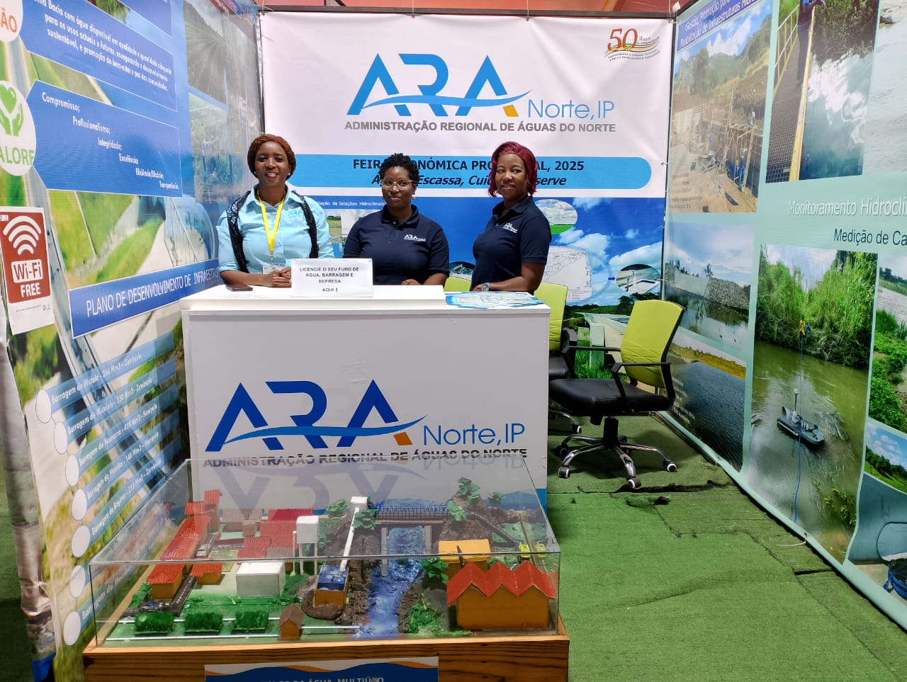 A ARA Norte, IP, participou na FENA, 2025 pela primeira vez como um dos integrantes dos potenciais expositores. Nesta senda, levou a sua experiência da FACIM para Nampula, onde existe a sua Sede. Trouxe consigo uma Maquete em 3D que simulava e promovia um exemplo prático de Projectos de Desenvolvimento Social e Económico com armazenamento de água em barragens para investidores privado interessados a construir barragens na Província de Nampula. Como as vezes se diz “Nampula é a cena!” e Nampula também, tem sido “A Capital do Norte.” Pois, é lá onde existem oportunidades de grandes projectos a serem priorizados para a gestão e o desenvolvimento sustentável de recursos hídricos como plano de desenvolvimento. A titulo de exemplo, o investimento que esta sendo mobilizado para a construção da Mega-Barragem de Macujé com consulta comunitária avançada, é um plano financiado pelo Banco Mundial que tem gerado expectativas para a sua materialização como construção do futuro risonho desta Província. Com esta Barragem, estima-se encaixar cerca de 80 Milhões de metros cúbicos de água, servindo os 2 polos de Desenvolvimento, respetivamente para a cidade de Nampula e a vila de Rapale, distrito onde será construída esta imponente infraestrutura hidráulica. Nestes planos de desenvolvimento com a água, a ARA Norte, IP, apresentou os detalhes do monitoramento hidrológico que inclui o processo técnico de medição de caudal e a qualidade de água que permitira com o aumento da qualidade de vida.