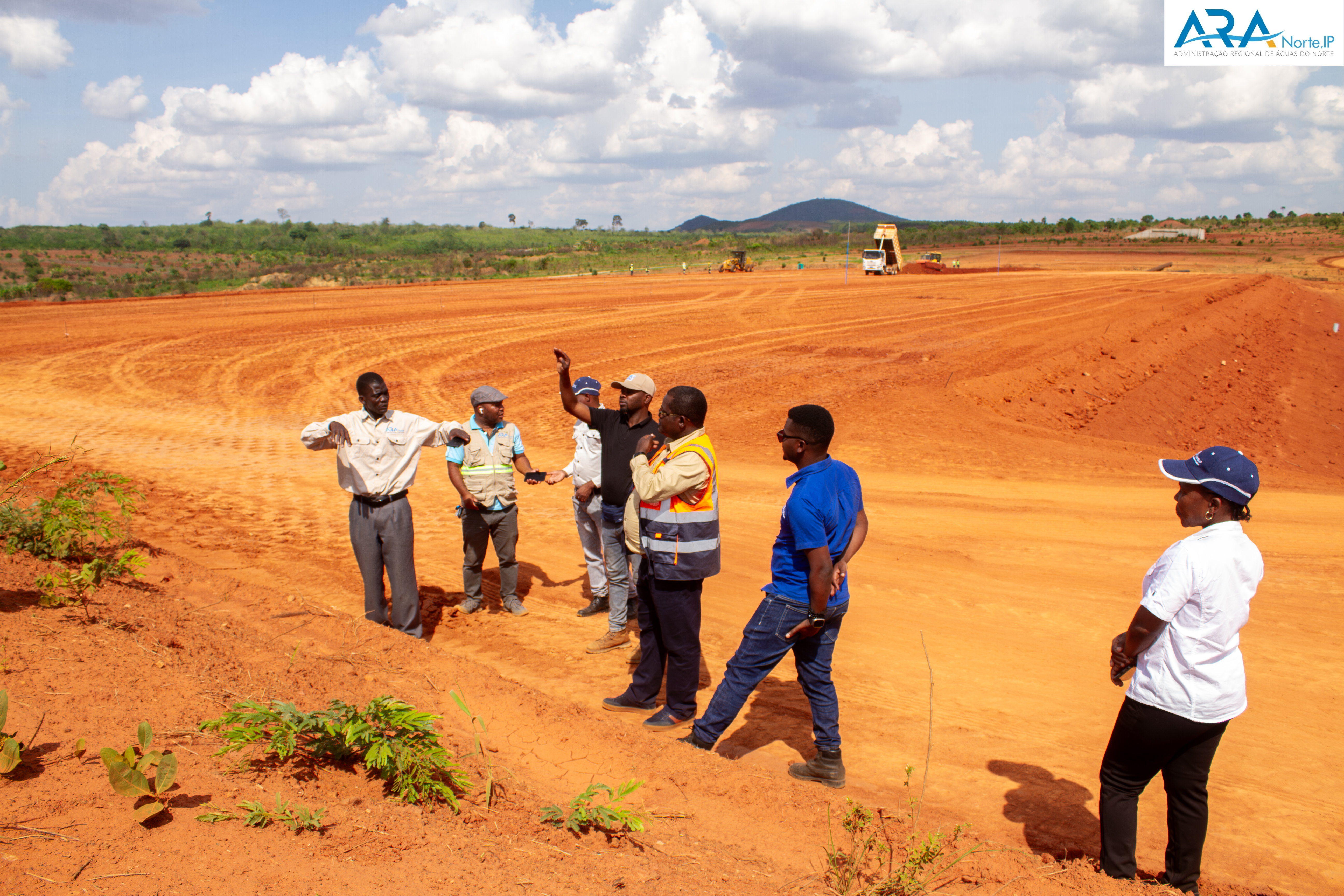 O Diretor Geral da ARA-Norte, IP, reunido com o Empreiteiro e Fiscal da Obra, apelou a observância dos planos de actividades, para que os trabalhos no terreno, observe-se um crescimento contínuo do corpo da barragem, com camadas de aterro sucessivas já colocadas e compactadas, para outra fase estrutural da futura albufeira.