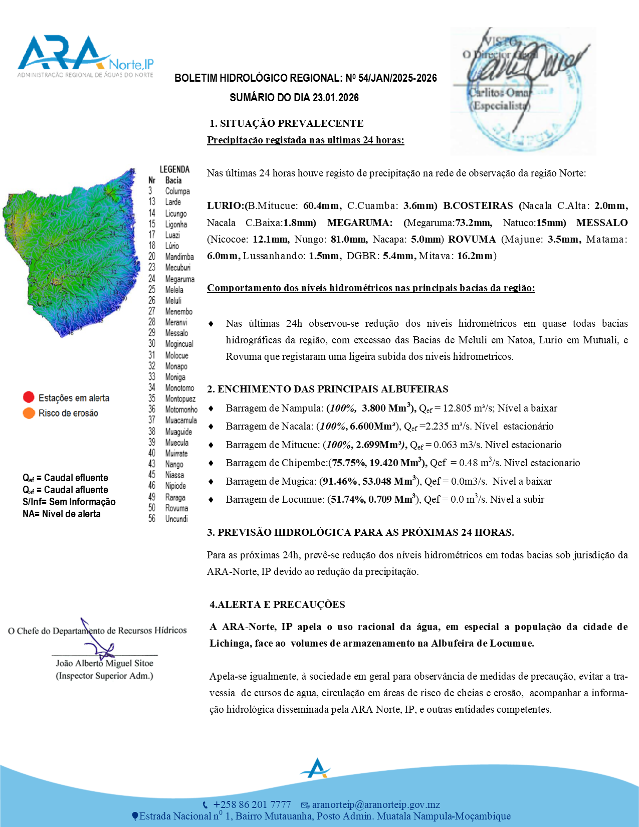BOLETIM HIDROLÓGICO REGIONAL: N0 54/JAN/2025-2026