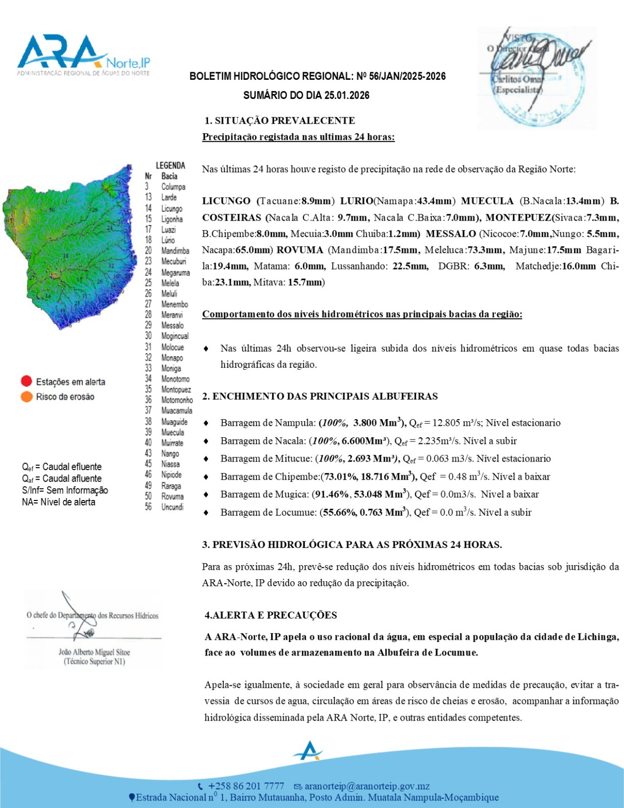 BOLETIM HIDROLÓGICO REGIONAL: N0 56/JAN/2025-2026
